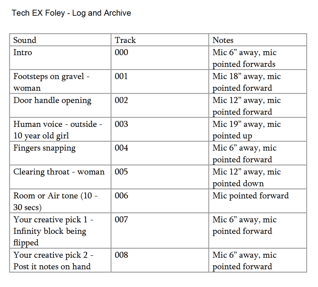 This exercise was pretty fun as I got to include my kids. Most of the sounds are actually being done by them while I record. They kept grabbing items and trying to get neat sounds recorded from them. I really love how the infinity cube one sounds like a crackling fire. The one thing that felt tough was trying to fill out the log felt a bit difficult as the example had columns that I couldn’t find while using the sound recording app on my phone.